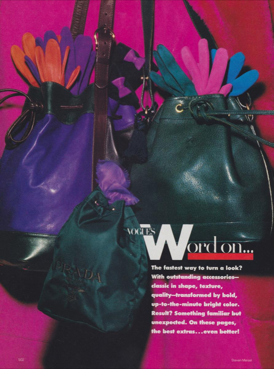 A myriad of bucket bags in Vogue October 1993, 210.