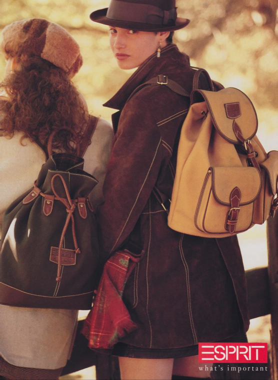 Esprit Ad with a hybrid backpack bucket bag. Vogue, September 1994, 99F.