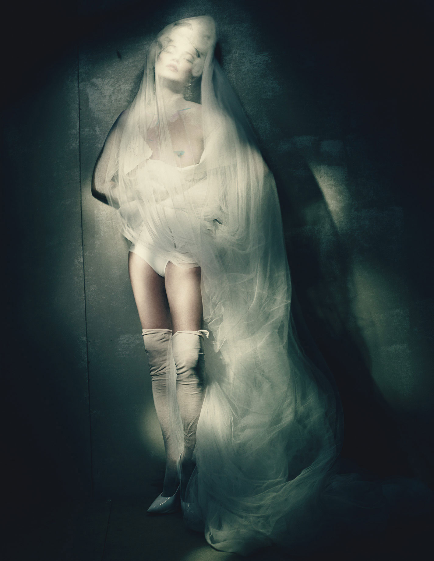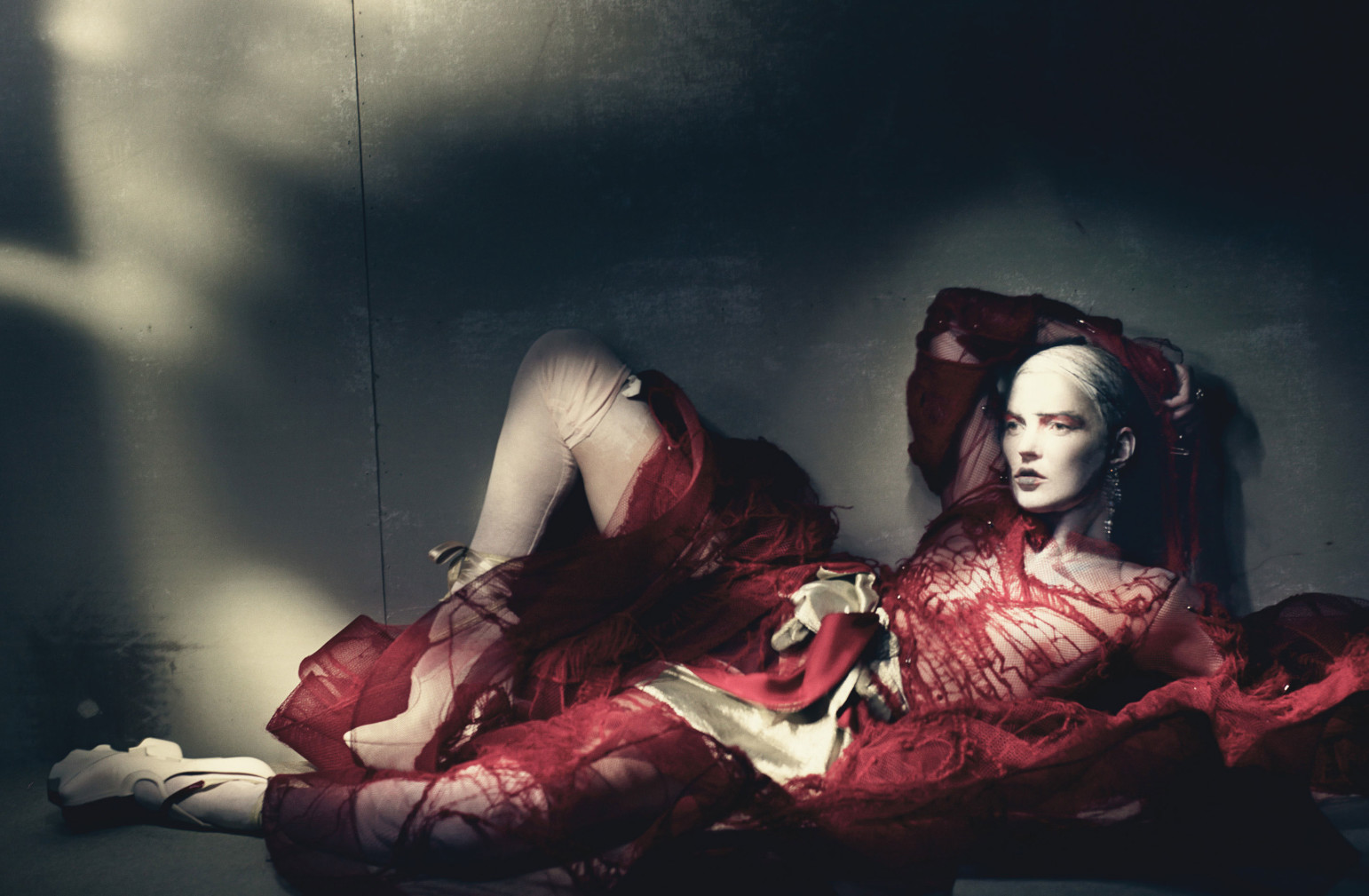 Giorgio Armani Privé dress, belt, and shoes; Chanel Fine Jewelry ring; vintage socks (throughout).Maison Margiela Artisanal gown, gloves, and shoes.Valentino Haute Couture gown and shoes.Maison Margiela Artisanal gown, belt, and shoes; antique earrings from Stephen Russell, New York.Dior Haute Couture coat and boots; Cadolle briefs.Atelier Versace dress and ring; Bulgari earrings and necklace.Gaultier Paris dress, briefs, and pumps; antique earrings from S.J. Phillips, London; vintage top.